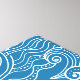 An intricate swirl and wave are mixed in varying shades of blues. Large and small blue circles are surrounded by larger swirls.