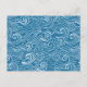 An intricate swirl and wave are mixed in varying shades of blues. Large and small blue circles are surrounded by larger swirls.