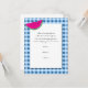 This fun invitation has a blue and white chequered tablecloth background that reminds of of old-fashioned summers. At the top left corner there is a slice of watermelon. Your customisable text is centred on a white centre. This is an ideal invitation for a picnic, family reunion, bbq, Memorial day event, or to end the summer season at Labour Day.