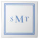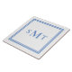 Create your own blue and white three letter monogram decorative tile. Simple to personalise with custom initials in elegant minimalist typography.