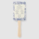 Presenting an elegant and timeless wedding program fan. Delicate blue and white toile is a timeless classic. Guests can fan themselves in comfort whilst staying abreast of the ceremony with these beautiful fan programs.