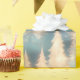 The Christmas trees, outlined in soft white and vibrant blue lights, bring a sense of elegant wonder and festive joy. These illuminated trees add a touch of brilliance and sophistication, making your gifts look radiant and captivating.