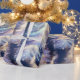 Scattered stars in glowing white and blue light add an extra touch of sparkle and wonder. Their twinkling presence enhances the wintry feel, capturing the serene and magical essence of a snowy night sky, making each gift look even more inviting.