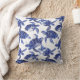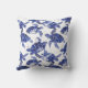 This coastal themed throw pillow features a blue and white pattern of turtles.