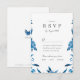 Blue and white watercolor floral wedding RSVP Card