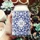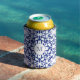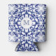 Blue and White Watercolor Spanish Tile Monogram Can Cooler