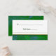 A custom placecard with elegant custom letters and a winter holiday art pattern of pine boughs and pinecones in red and green on a green background.
