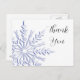 Customise the festive Blue and White Winter Snowflake Thank You Postcard with your own personal message of appreciation and gratitude for gifts received after a classy December, January or February birthday, bridal shower, wedding or holiday. This elegant custom wintery thank you note features an intricate snowflake design with a blue tint and a white background.