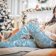 Blue and White Winter Swirl Christmas Leggings