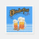 Oktoberfest blue pattern paper napkins with graphics of two beer steins and a pretzel. The bottom of the napkins has the traditional blue and white diamond check pattern, and fancy graphic text reading Oktoberfest runs across the top.