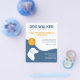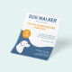 Stylish blue and white dog walker business template with a touch of orange colour. The price is placed over an orange circle for an eye-catching detail. There is also Destei's white dog head silhouette. The dog resembles a Labrador Retriever breed dog. Personalise the sample text areas with your business info.