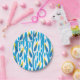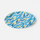 Blue and Yellow Abstract Leaves Elegant Chic Paper Plate