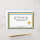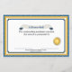 Decorative blue, yellow and white academic award certificate, with custom text. Personalise to suit your class room or school awards ceremony needs.