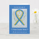The guardian angel greeting or note card features the picture of a blue and yellow awareness ribbon angel painting. Blue and yellow awareness ribbon means support for children with Down's Syndrome. The card states "Support <Your Cause Here> Awareness". Add your own optional words or message to the greeting card for personalised angel art cause awareness notecards! You can also remove the text for an art only angel note cards. The blue and yellow awareness angel ribbon painting art greeting cards can be customised with personalised messages to make great awareness cause art cards for fundraisers, awareness gifts, or other special events. Give this angel art card as an awareness ribbon gift for any occasion.