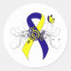 Blue and Yellow Awareness Ribbon with Butterfly Classic Round Sticker