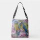 Blue And Yellow Budgies In Pink Blossom Tree, Crossbody Bag