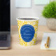 A sunny golden yellow and white damask pattern motif gives these paper party cups a sophisticated air white a base of easy to personalise text lets you create a completely unique and one of a kind party cup that will give your event the high-end and extra special touch guests and brides to be crave.