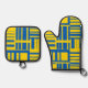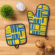 Blue And Yellow Colour Line Design Pattern Oven Mitt & Pot Holder Set