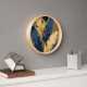 Elevate Your Home Decor With Our Exquisite Blue And Golden Yellow Wall Clock. A Unique Design, Seamlessly Blending Feather And Fur Looks. Infuse Modern Luxury Into Your living room or bedroom, YOU CAN MATCH THIS WALL DECOR WITH SAME PATTERN DOUBLE SIDED FEATHER THROW PILLOW, With One Side Featuring A Plush Look Feather Pattern In Shades Of Blue And Golden YEllow, And The Other A Chic Fur-inspired Design In Golden Yellow And Blue Feather. Check our Collection Of Unique Home Decor, Explore A Palette Of Sophisticated Colours And Textures To Enhance Your Wall Decor. Impress Your Guests With This Blue And Golden Yellow Feather Wall Clock.