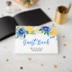 This beautiful and elegant wedding guest book features watercolor blue, yellow and white flowers with foliage. The text combines handwritten script and serif fonts for a stylish and modern look. This is perfect for a spring or summer rustic wedding.
