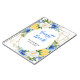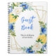 This beautiful and elegant wedding guest book features watercolor blue, yellow and white flowers with foliage on a gold geometric frame. The text combines handwritten script and serif fonts for a stylish and modern look. This is perfect for a spring or summer rustic wedding.