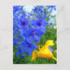 Rich blue delphiniums and yellow lily available on clothing and many other gift ideas.