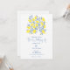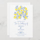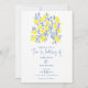 This joyful wedding invitation radiates happiness with its bright yellow and blue theme. The top of the card features a delightful lemon branch illustration, bursting with vibrant yellow lemons and delicate blue leaves. The handwritten-style script “The Wedding of” adds a touch of elegance and personality, while the couple’s names and wedding details are clearly displayed in a clean serif font. The combination of playful design and classic typography makes this invitation perfect for sunny, cheerful weddings, whether held in the spring or summer. It’s a fresh, modern way to invite guests to celebrate your special day.