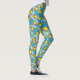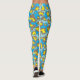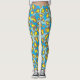 Blue and yellow leopard print leggings, featuring a leopard animal print pattern in tones of blue and yellow and taupe brown.
