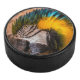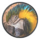 Blue and yellow macaw portrait hockey puck