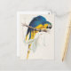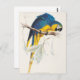 Edward Lear Blue and Yellow Macaw postcard. Oil painting on canvas from 19th century. Naturalist painter Edward Lear depicted hundreds of different birds throughout his career. Lear is particularly famed for his beautiful illustrations of tropical birds like parrots and cockatoos. This painting of a blue and yellow macaw (Macrocercus Ararauna) is one of Lear’s most stunning works. It features the bird sitting on a branch crouched over with its famous white and black striped face towards the viewer. A pretty gift for fans of parrots, naturalist paintings, bird illustrations, and nature art.