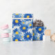 Blue and yellow painterly flowers wrapping paper