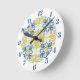 Blue and yellow pretty Portuguese tiles pattern Round Clock