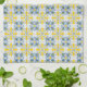 Blue and yellow "azulejos" is a Portuguese-inspired tile pattern that fits not only home décor objects but also wearables like clothing and accessories. The essence of this design, known as "azulejo," traces its origins back to the Arabic phrase "small polished stone." Ceramic tiles belong to Portugal's rich history and cultural tapestry. They are a part of the nation's architectural heritage, adorning both the interiors and exteriors of old structures.