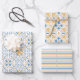 Coordinating wrapping paper features Mediterranean blue and yellow Tuscan damask. Perfect for birthdays,, baby shower, new baby, decoupage, and crafting.