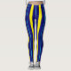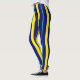 Bold yellow stripes and a skinny light blue stripe on a dark, navy blue background make these leggings stand out!