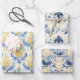 BLUE AND YELLOW WATERCOLOR DAMASK GIFT WRAPPING PAPER SHEET