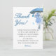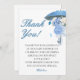 This "Blue April Showers Bring May Flowers" baby shower thank you card features a soft blue design with delicate flowers in shades of blue,A charming blue floral umbrella adds a touch of whimsical Perfect for expressing gratitude to guests with a serene and seasonal touch.