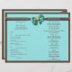 A "wedding program" with fully customisable templates enabling you to create the perfect program for guests. DESIGN - The front and back have an elegant aqua bow with a pearl and gold gem, set against a dark brown ribbon and FAUX sandstone turquoise blue background. CUSTOMIZE IT: Add your own images and/or graphic design; change the size / style and colour of the font; add / delete or move templates to any position to create a unique custom layout, by using the "customise it" button. IDEAL FOR: "Aqua blue and brown wedding", "winter wedding", "blue and chocolate brown" theme wedding functions / events / gatherings and ceremonies. Hand them out to guests entering the church when attending your ceremony.