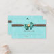 This flat business card is ideal for guest placement and seating arrangements for tables on your special day. DESIGN - An elegant aqua, FAUX satin bow with a gold and pearl gemstone, is set against a brown ribbon which is surrounded by soft floral swirls and a turquoise blue background. PERSONALIZE IT - Use the "customise it" button to change the background colour, the size / style and colour of the font and to add or delete templates. These "seating cards" allow you to write your guests names in, making this an affordable option if you're on a budget. MATCHING RANGE - Scroll down to see the full range of items in this exclusive range. CUSTOM REQUESTS - For assistance, colour changes or custom designs, contact me on clientrequestrw@gmail.com