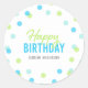 Blue Aqua Green Confetti Happy Birthday Classic Round Sticker