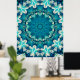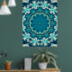 Blue Aqua Mandala Rosette Retro Hippie Poster