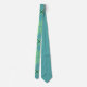 This necktie has a mid-century modern design of arrows in two shades of blue on a field of seafoam green.