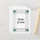 Wedding reception postcard art deco design design. You can customise this art deco wedding reception postcard with your wedding details. Should you require any help with customising then please contact us through the link on this page. Blue art deco design personalised wedding reception postcard