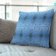 Blue aesthetic throw pillow featuring an Asian Oriental coastal surface pattern with a piece from the visual poem called "Scar Collector" which was originally published in Volume I from the Diamond Dust Poems From the Black Sea photo book series. Rustic throw pillow featuring a blue coastal design for summer lake seaside or ocean inspired properties.