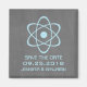 Cute and nerdy Atomic Chalkboard Save the Date Magnet featuring a simple atomic symbol in light blue on a chalkboard look background. This geeky and fun save the date magnet is perfect for announcing your science themed wedding! Easy to customise, simply add the details of your wedding in the spaces provided. Click "Customise It" to find more personalisation options.