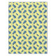Blue leaves pattern over a light yellow lemon background. The background colour can be changed.