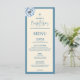 Celebrate your baby boy's baptism with our charming Baby Boy Baptism Menu, featuring elegant whimsical design. Design comes together with blue frame, lettering and flower in the corner and finally also delicate blue cross. This menu adds a touch of grace and sophistication to your celebration, setting the perfect tone for this special religious occasion.