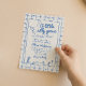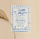 If you looking for an elegant unique and easy customisable baby boy shower invitation this is perfect for you. As you see it features a retro handwritten script of aa little silly goose is almost there in blue. And hand drawn goose on. And blue border frame and blue chequered squares. All blue and on cream background. Very easy to customise and use. So grab it and make your invites very engaged.