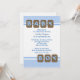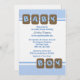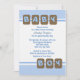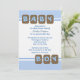 Blue Baby Boy is a blue bordered Baby shower invitation card with quirky dancing blue letters on brown rounded squares, ideally for upcoming baby boys. © Morning 6