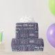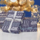 A blue baby boy baby gift wrap for a new baby gift or baby shower, featuring sayings for boys.